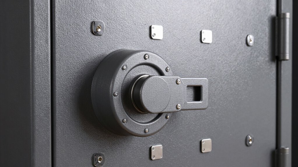 When it comes to securing your property, anti-pry and anti-drill features play a crucial role in deterring intruders. These features are designed to make forced entry difficult, increasing the time and effort required for someone to break in. To guarantee these features are effective, you need to pay attention to security maintenance and the manufacturing standards behind the products you choose. Proper security maintenance involves regularly inspecting your locks and hardware for signs of wear or damage. If a lock’s anti-pry plate or anti-drill components show signs of rust, cracks, or looseness, they could become weak points that thieves exploit. Maintaining your security hardware ensures it performs efficiently, keeping your property safe. Additionally, selecting hardware that complies with recognized manufacturing standards ensures your security measures are built to withstand attempted breaches. Manufacturing standards are equally critical. Reputable manufacturers adhere to strict guidelines that guarantee each lock or security device is built with quality materials and precise engineering. These standards often specify the thickness of metal, the strength of internal components, and resistance tests that the hardware must pass before reaching the market. When you invest in products that meet high manufacturing standards, you’re selecting hardware that’s been rigorously tested for durability against prying tools and drilling attempts. Lower-quality products might promise similar features but often fall short in real-world scenarios, making your security measures less dependable. Choosing locks that incorporate anti-pry and anti-drill features isn’t just about the initial purchase; it’s about ongoing security maintenance. Regularly check the hardware for signs of tampering or deterioration. Clean and lubricate moving parts to prevent rust, which could weaken the lock’s integrity. If you notice any damage or suspect that the features are compromised, replace or upgrade your locks promptly. Doing so maintains their resistance to forced entry and prolongs their effectiveness. When evaluating security hardware, look for certifications indicating compliance with recognized manufacturing standards. These certifications verify that the product has undergone rigorous testing and adheres to industry benchmarks for security and durability. Opting for hardware with such certifications gives you confidence that your anti-pry and anti-drill features will perform when it counts most. Remember, investing in quality hardware and maintaining it properly is your best defense against intruders. It’s not enough to have the right features; you need to guarantee they remain functional over time through diligent security maintenance informed by high manufacturing standards. This proactive approach creates a stronger barrier, giving you peace of mind knowing your property is well protected.