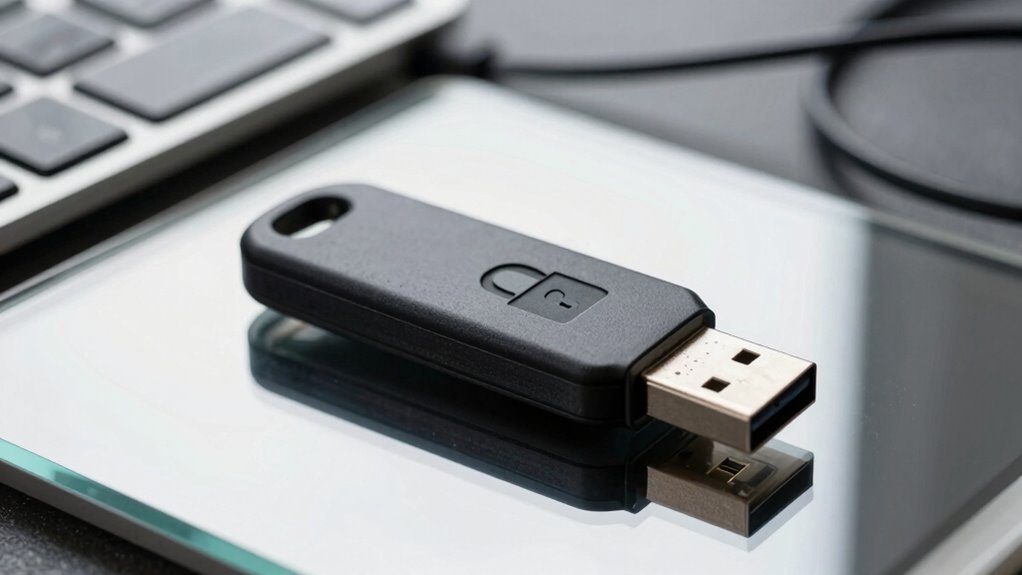 Don’t be fooled into thinking a password alone turns your USB into Fort Knox. It’s like locking your door but leaving the window wide open. Encryption is a specific standard that truly shields your data, like a digital vault with multiple layers of security. So, next time you think a password is enough, remember that true protection is a carefully crafted code, not just a simple lock. Your data’s safety depends on understanding the difference.