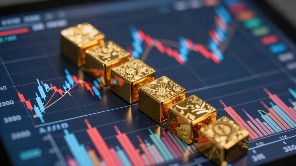 You’ll notice that gold’s correlation varies across regions due to regional differences and cultural preferences. In some areas, like Asia, gold acts as a cultural investment and safe haven, showing weaker correlation with stocks and bonds. In contrast, Western regions often see gold move more in tandem with financial markets. These regional differences influence how gold behaves, making it essential to evaluate local factors when assessing its correlation.