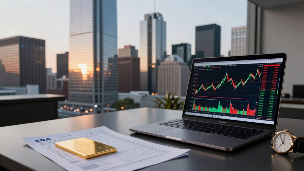 Market fluctuations cause your gold IRA pricing and valuation to shift as investors react to economic uncertainties. During volatile times, gold prices often rise as a safe haven, leading to price adjustments that can increase your account’s value. However, sharp declines or rapid changes can also cause spreads to widen, making it essential to monitor market movements closely. Staying informed helps you understand how these fluctuations impact your gold investment.