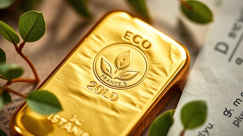You might think ESG-focused gold barely moves the needle on prices, but it’s actually transforming the entire market landscape. When mining companies adopt sustainable practices and improve their environmental scores, they boost investor confidence and create demand for ethically sourced gold. This can elevate prices, stabilize markets, and even command premiums. ESG factors now influence market sentiment in real-time, making traditional gold prices more dynamic and reflective of ethical investment trends.