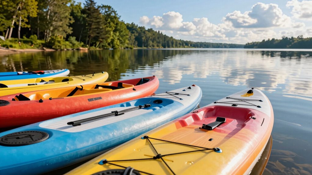 Inflatable models aren’t built to be the rugged warriors of high-impact or rough waters. Think of them as delicate glassware in a storm—vulnerable to durability concerns when water impact is intense. If you plan to tackle choppy waves or rough conditions, consider a hard-shell kayak or paddle board instead. Their sturdiness guarantees safety and longevity, whereas inflatable models may suffer damage under harsh water impact.