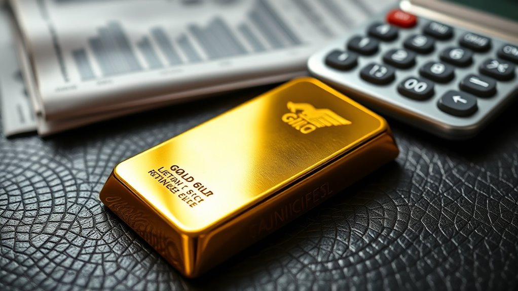 When you invest in gold for retirement, consider the tax implications carefully. Holding gold in a Traditional IRA offers tax-deferred growth, meaning you don’t pay taxes until withdrawal, usually at a lower rate. However, outside IRAs, physical gold is taxed as a collectible with rates up to 28%. Be sure to keep detailed records, follow IRS rules, and understand how your gold investments impact your overall tax strategy.