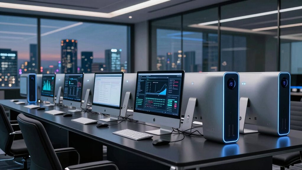 The Mac Pro integrates seamlessly with enterprise management tools like Jamf and Munki, allowing me to automate deployment, enforce security policies, and manage updates efficiently. I can easily configure device settings remotely and track hardware status through these platforms. Apple’s support for MDM standards guarantees compatibility with most enterprise solutions, making it simple to incorporate the Mac Pro into existing management workflows without hassle.