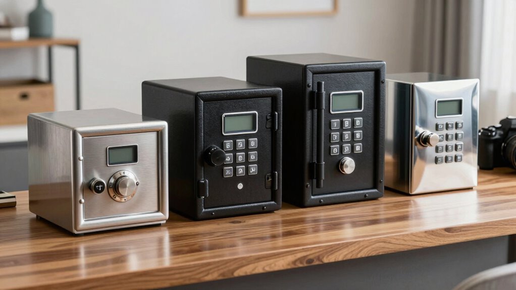 Selecting a mini safe that fits your budget requires balancing cost with essential security features. First, determine your maximum budget and choose a safe that offers key security functions within that range. There’s a noticeable difference in price between basic digital safes and more advanced biometric or fireproof models, so consider what features are most important for your needs. Also, check if extras like mounting hardware or batteries are included or if you’ll need to buy them separately. While affordability is important, don’t sacrifice durability; a well-constructed safe may cost a bit more but will last longer and provide better protection. Investing a little extra in a reliable safe can save you money down the line by preventing theft or damage.