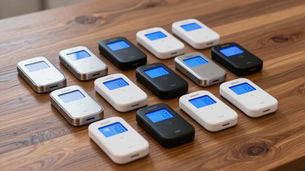 A compact, lightweight design is essential for a pocket weight checker, as it guarantees I can carry it effortlessly wherever I go. I look for devices that fit easily in pockets, bags, or small toolkits without adding bulk. A foldable or protective cover is a bonus, helping prevent damage and keep the device accurate during transport or storage. An ergonomic shape or built-in handle makes gripping and using the checker more comfortable, especially in different environments. Small size and minimal weight allow for discreet operation, so I don’t draw unnecessary attention or feel weighed down. Durability is also key; a well-constructed device made from quality materials ensures it remains functional and precise, even when I’m on the move. This blend of portability and thoughtful design makes a pocket weight checker truly reliable.