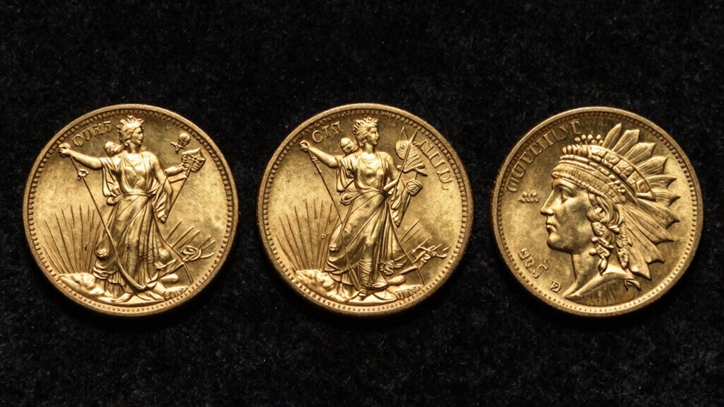 Pre-1933 US gold coins carry deep historical significance because they represent a pivotal era in American monetary history, reflecting the nation’s shift away from the gold standard. These coins often commemorate key events, influential figures, or important periods in U.S. history, adding layers of meaning for collectors. Their rarity and historical context can markedly influence their market value and desirability. Many feature unique designs and minting details that showcase the artistic and technological practices of their time. Owning these coins provides a tangible connection to America’s economic and cultural past, serving as a reminder of the nation’s evolving monetary policies. Their historical importance makes them more than just collectibles—they’re artifacts that tell the story of America’s financial journey.